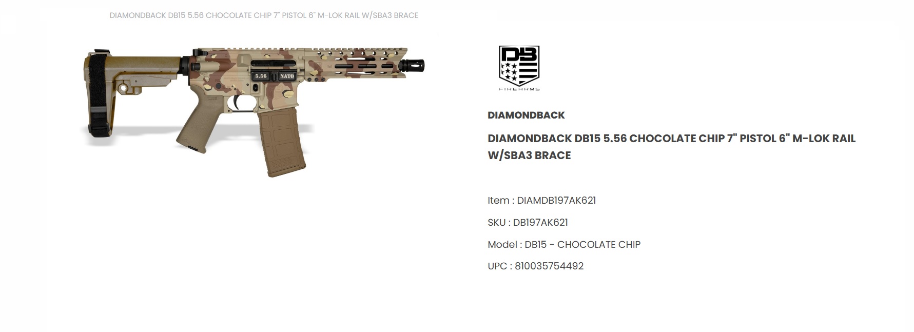 DIAMONDBACK DB15 5.56 CHOCOLATE CHIP 7″ PISTOL W/SBA3-4492